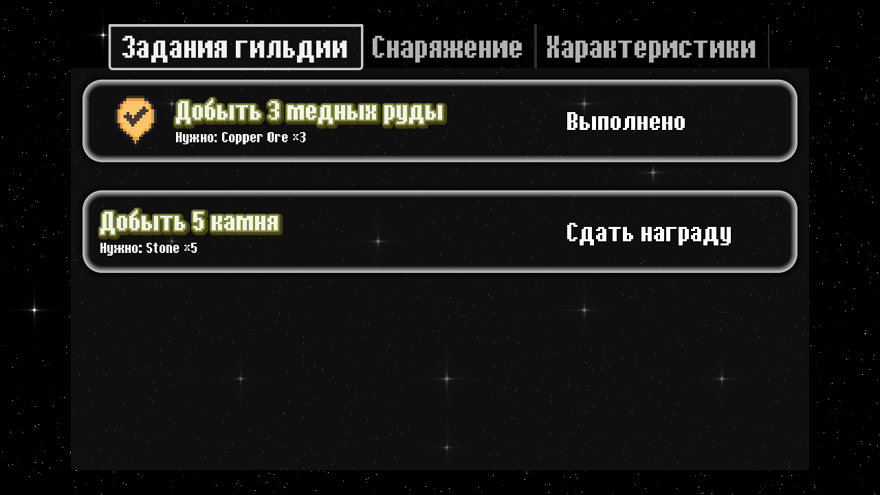 - NPC и ветка квестов (гильдмастер, торговец, финальный босс)